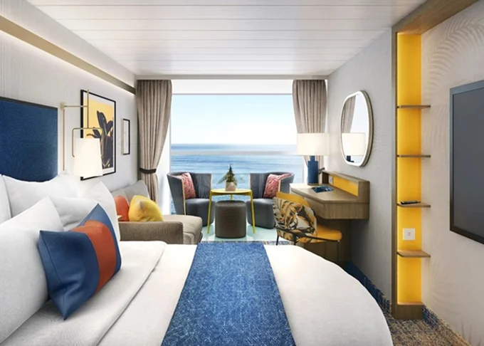 34-41 m². Veľké panoramatické neotvárateľné okno s výhľadom na more. 16,17. paluba vpredu. Max 4 osoby. Výhody Royal Suite Sky class.