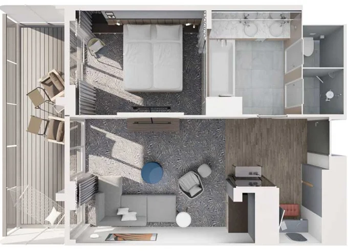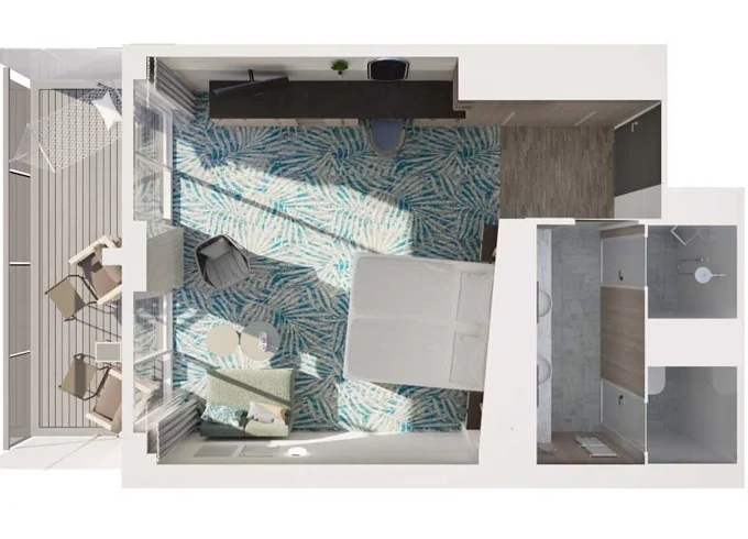 JKBO - Junior Suite s balkónom B 26 m² + balkón 7 m² so stoličkami a podnožkami. 8-12. paluba. Max 4 osoby. Výhody Junior Suite. 4 458 € 2 229 € za osobu