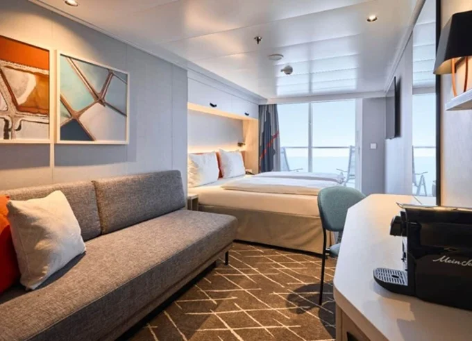 SKAO - Schöne Aussicht Suite 39 m² + balkón 10-12 m² s ležadlami a hojdacou sieťou. 7-14. paluba. Max 4 osoby. Výhody Suite. 6 298 € 3 149 € za osobu