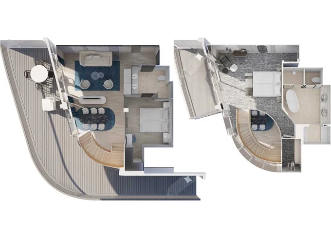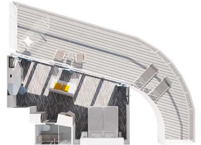 VEPO - Kajuta s terasou Premium 30 m² + balkón 35 m² so stoličkami, ležadlami a hojdacou sieťou. 15. paluba. Max 2 osoby. 3 538 € 1 769 € za osobu