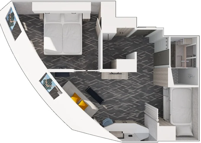 BAFO - Kajuta s balkónom kat. F 17 m² + balkón 5-7 m². 15. paluba. Max 4 osoby. 2 838 € 1 419 € za osobu