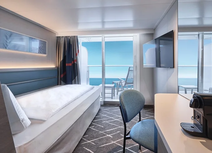 SSAO - Schöne Aussicht Suite 39 m² + balkón 10-12 m² s ležadlami a hojdacou sieťou. 7-14. paluba. Max 4 osoby. Výhody Suite. 5 556 € 1 389 € za osobu